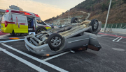 영덕포항고속도로 휴게소 진입로서 차량 전복… 영덕소방서 신속 대응
