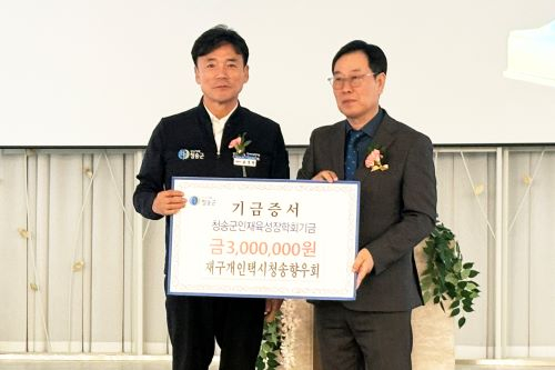 재구개인택시청송향우회는 대구에서 개인택시를 운영하는 청송 출신자들의 모임으로, 고향과 후배 사랑을 실천하며 2016년부터 11년째 장학금을 꾸준히 기탁해 오고 있으며, 올해까지 총 2,980만 원을 기탁했다.