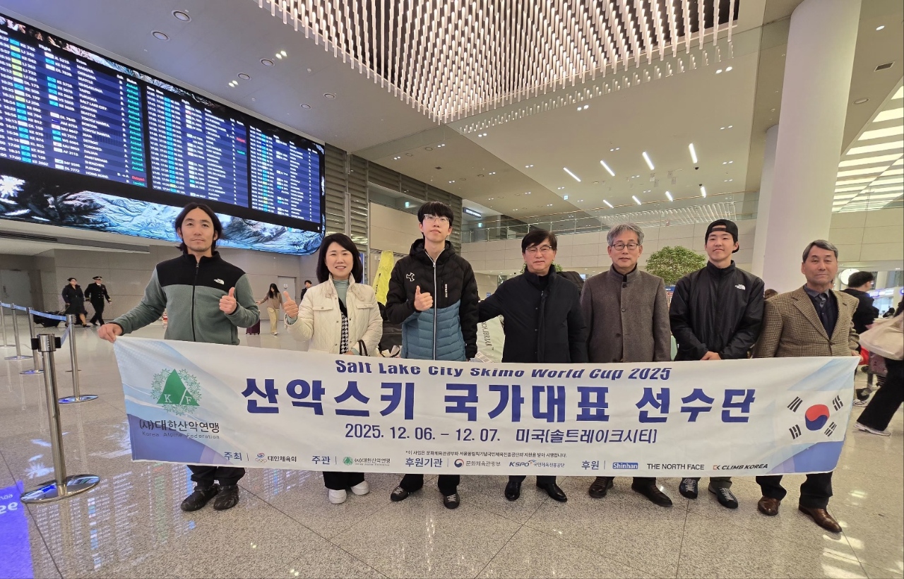| ↑↑ 사진은 미국 솔트레이크 시티에서 열린 2025년 산악스키 국가대표로 참가한 박현준군의 모습(좌측에서 3번째) |