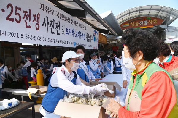 한국자유총연맹 청송군지회가 주관하고 청송군 자원봉사센터가 지원한 이날 행사에는 군민 300여명이 참석하여 6‧25전쟁 당시의 사진을 관람하고 그 시절의 보리떡‧보리주먹밥을 나눔으로써 6‧25전쟁의 참상을 돌이켜보는 뜻깊은 시간이 되었다.