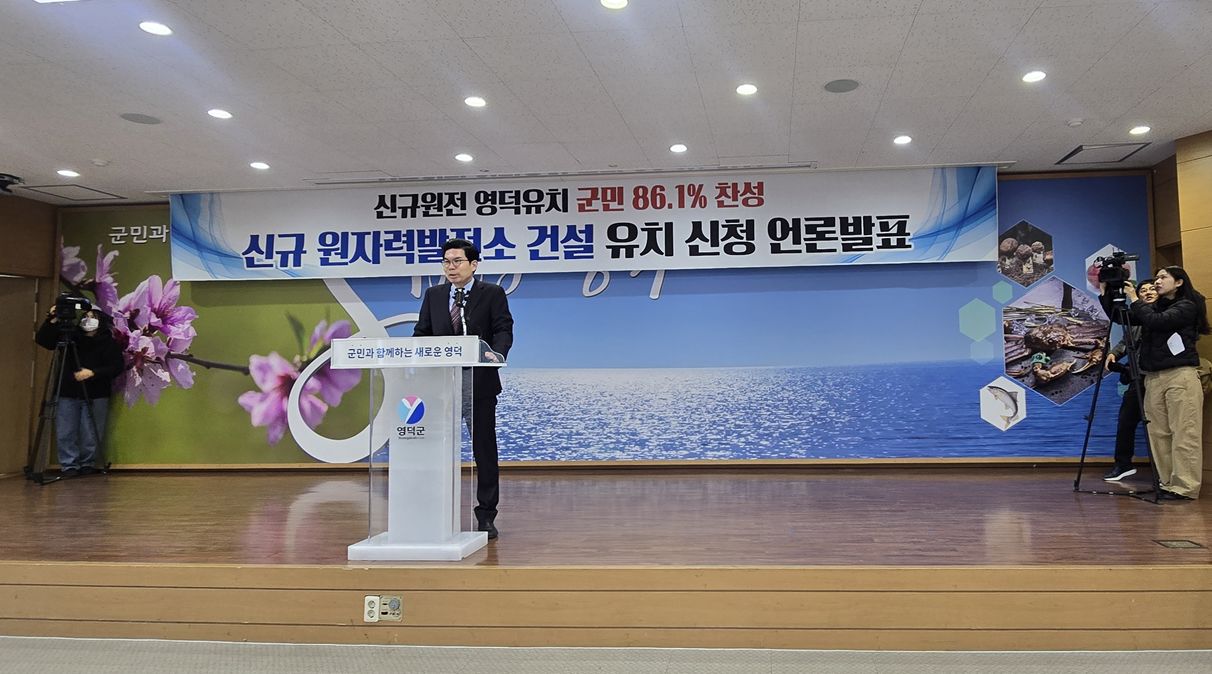 앞서 영덕군은 지난 9~10일 여론조사 전문기관 리얼미터와 리서치웰에 의뢰해 군민 1,400명을 대상으로 원전 유치 찬반을 조사했다. 그 결과 86.18%가 찬성한다고 응답했다. 표본오차는 95% 신뢰수준에 ±3.7%포인트다. 찬성 이유로는 인구 유입과 지역경제 활성화에 대한 기대가 가장 많이 꼽혔다.