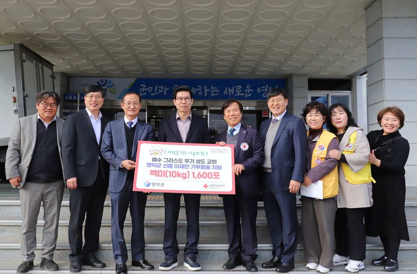 예수그리스도 후기 성도 교회와 대한적십자사 경상북도지사가 지난해 3월 발생한 경북산불의 피해로 어려움을 겪고 있는 영덕군 이재민들을 위해 지난 25일 6,400만 원 상당의 10kg 들이 쌀 1,600포를 기부하는 전달식을 가졌다.