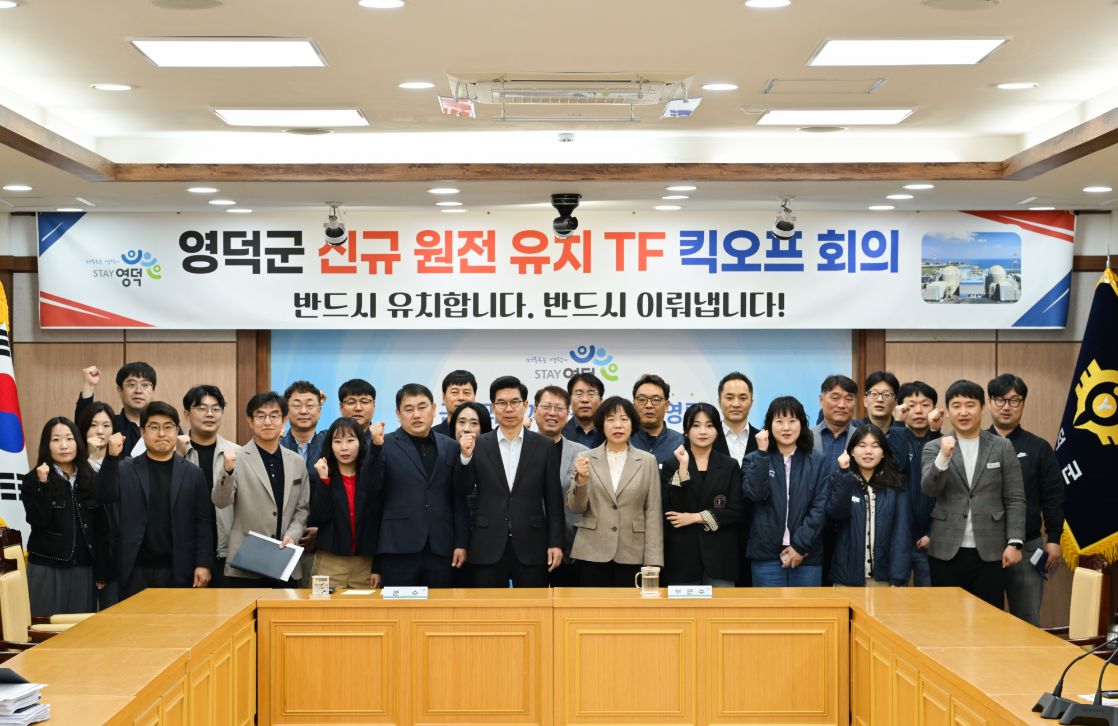 김광열 영덕군수는, “군민의 열망이 크고, 지금까지 철저히 준비해온 만큼, 이번 TF 출범을 계기로 유치 대응체계를 한층 강화해 반드시 신규 원전을 유치하겠다”는 강한 의지를 밝혔다.