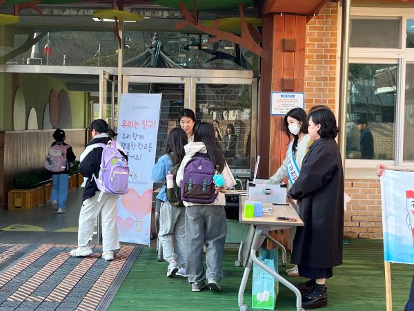 이날 캠페인에 참여한 6학년 조민서 학생은 “아침에 학교 정문에서 선생님들이 반갑게 인사해 주셔서 기분이 정말 좋았어요. 저도 친구들에게 먼저 다정하게 인사하고 사이좋게 지내야겠다는 생각이 들었어요.”라고 말했다
