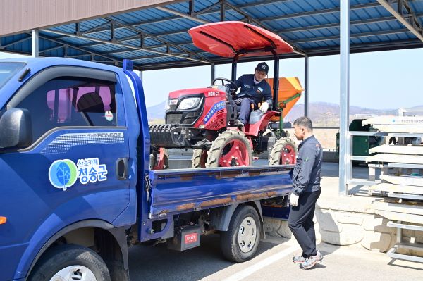 | ↑↑ 청송군이 농촌 고령화에 따른 농기계 수령 및 반납의 어려움을 해소하고자, ‘임대농기계 운반서비스 사업’을 지난 3월부터 본격 시행하고 있다./사진=청송군 제공 |