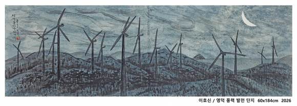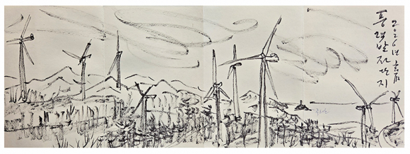어찌 아름다움만을 추구할 것인가. 비록 무생물이지만 영덕의 상징으로 21세기를 풍미한 풍력발전기를 망각할 수는 없는 것이다. 해서 화첩을 다시 펴고 풍력발전단지의 밤을 그리기로 했다. 밤과 어둠을 밝혀주던 시절을 돌아보며. 사실 세상에서 영원한 것이 어디 있는가. 이 그림이 훗날 오늘의 영덕을 증언하는 일이 되길 바라는 마음이다. 시대의 아픔과 함께.